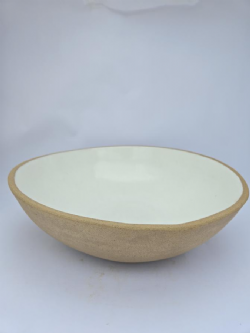 O bowl saladeira de cerâmica tem formato arredondado, confortável ao toque.