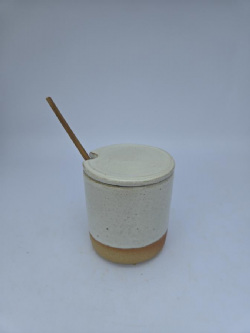 O açucareiro botijão de cerâmica tem formato arredondado, confortável ao toque.