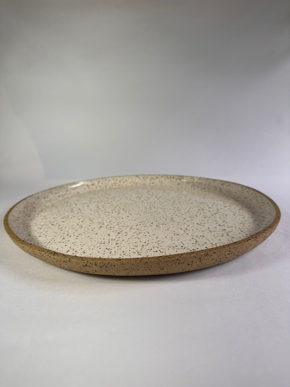 Prato de bolo com frase de cerâmica artesanal produzida em argila de alta temperatura.